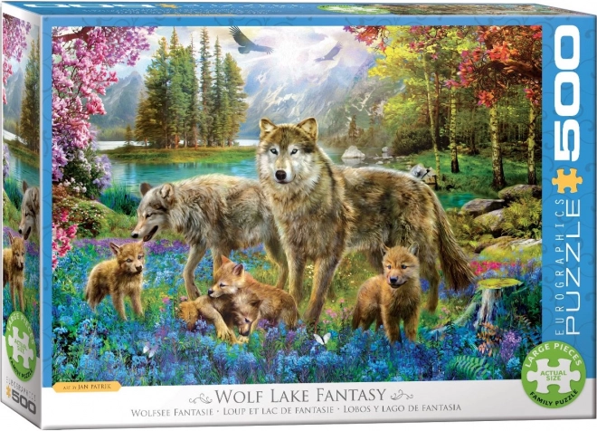 Geniet van ontspannen puzzelen met de EUROGRAPHICS-puzzel met het motief van een wolvenfamilie bij het meer. De stukjes zijn extra groot (ca. 2,5 cm), waardoor ze ideaal zijn voor kinderen, senioren en iedereen die gemakkelijke hanteerbaarheid en meer comfort tijdens het puzzelen verkiest. De afgewerkte afbeelding meet ongeveer 67,63 × 48,89 cm.