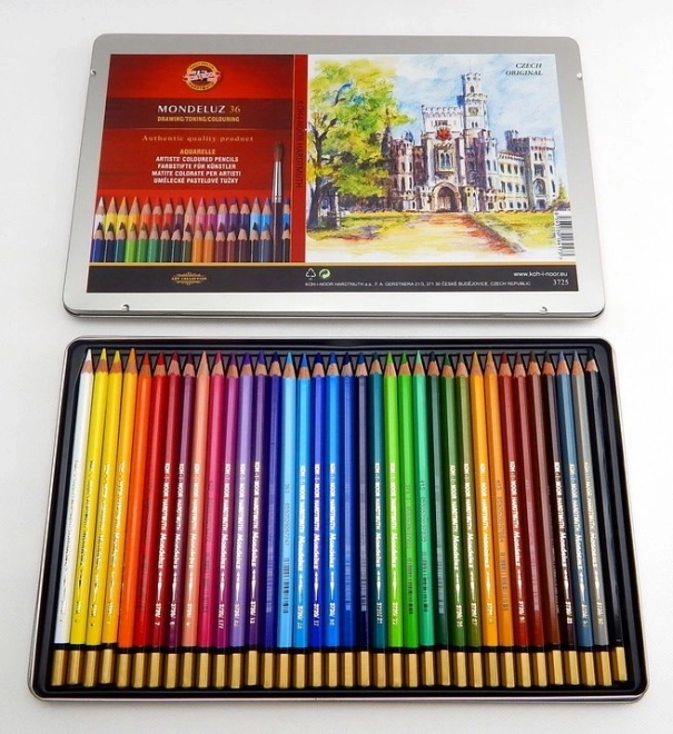De aquarelkleurpotloden Koh-i-noor Mondeluz zijn het perfecte hulpmiddel voor iedereen die zijn of haar artistieke vaardigheden naar een hoger niveau wil tillen. Dankzij hoogwaardige pigmenten blijven uw tekeningen lang prachtig en kleurrijk levendig. In de set vindt u 36 tinten, die een rijke palet bieden voor diverse technieken en effecten.