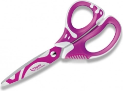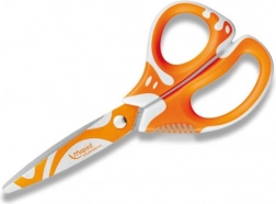 Praktische schoolscharen MAPED Zenoa Fit van 13 cm, ideaal voor kinderen en beginners. Ze bieden zachte, symmetrische handgrepen voor een comfortabele grip, afgeronde punten voor extra veiligheid en versierde bladen van geslepen roestvrij staal voor precieze en soepele knippen. Kleuren worden geleverd in een mix afhankelijk van de voorraad.