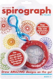 De compacte, reisvriendelijke SPIROGRAPH Cyclex is een geweldige creatieve accessoire voor kinderen en volwassenen. Je klikt hem eenvoudig vast met de praktische clip en tovert in een mum van tijd indrukwekkende spirografische ornamenten op papier, thuis, op school en onderweg.