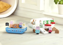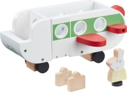 Ontdek de magie van fantasierijk spel met het houten vliegtuig uit de PEPPA PIG-collectie. De robuuste FSC-houten speelset ligt goed in kleine handjes, de draaibare wielen zorgen voor soepel rijden en de openslaande deuren nodigen uit om aan boord te gaan. Inclusief een figuur van mevrouw Konijn, 2 koffers en een interieur met 4 zitplaatsen – ideaal voor creatieve verhalen en het ontwikkelen van de fijne motoriek.