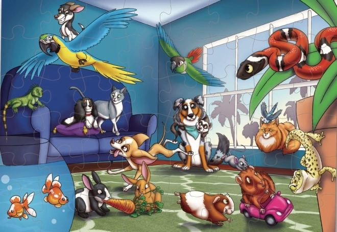 Geniet van de puzzel met een thema van geliefde huisdieren, ideaal voor de ontwikkeling van kinderfantasie en fijne motoriek. Deze vloerpuzzel is ontworpen voor kinderen vanaf 4 jaar en biedt een geweldige manier om tijd met uw kleintjes door te brengen.