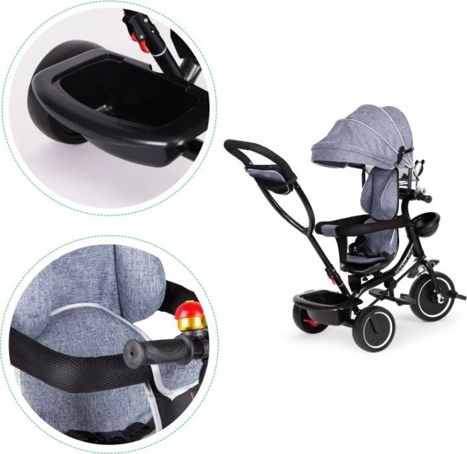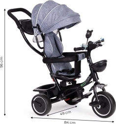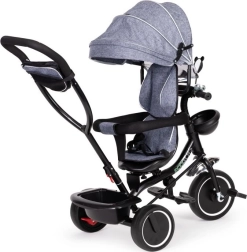 Naast de draaibare zitting biedt de driewieler ook twee opbergmanden voor favoriete speeltjes. Dankzij de inklapbare voetsteunen kunnen kinderen comfortabel rusten terwijl ouders de volledige controle hebben. De driewieler is ook uitgerust met drie wielen en een rem voor veilig stoppen.