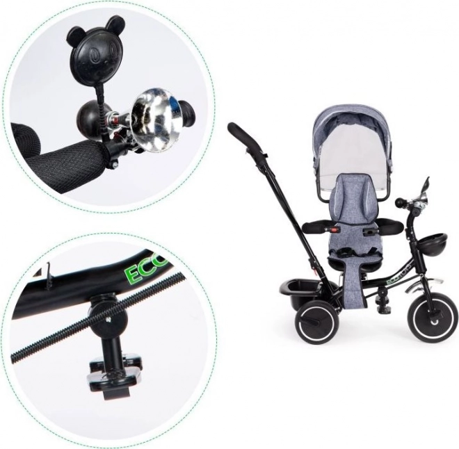 De ECOTOYS kinderdriewieler is ontworpen om comfort en veiligheid aan uw kind te bieden. De driewieler heeft een zachte comfortabele rugleuning en veiligheidsgordels die het kind beschermen tegen uitvallen. De opklapbare kap beschermt tegen regen en zon, terwijl de draaibare zitting het in- en uitstappen voor de jongste kinderen vergemakkelijkt.