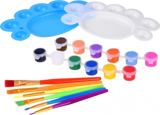 Verblijd je kinderen met de creatieve schilderset, die van alle gemakken voorzien is! Het pakket bevat 12 kleuren, 2 paletten voor het mengen van verf, kwasten van verschillende diktes, rollers voor het maken van vormen en kwasten met schuim- en sponsuiteinden. Bescherming voor de kleine artiest is een schattig schort en mouwtjes met dierenmotieven. Kinderen kunnen patronen stempelen, kleuren mengen en zo hun eigen meesterwerken creëren.