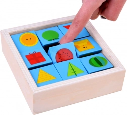 Kleurrijke blokken en illustraties zorgen ervoor dat kinderen op een speelse manier vormen en kleuren leren.