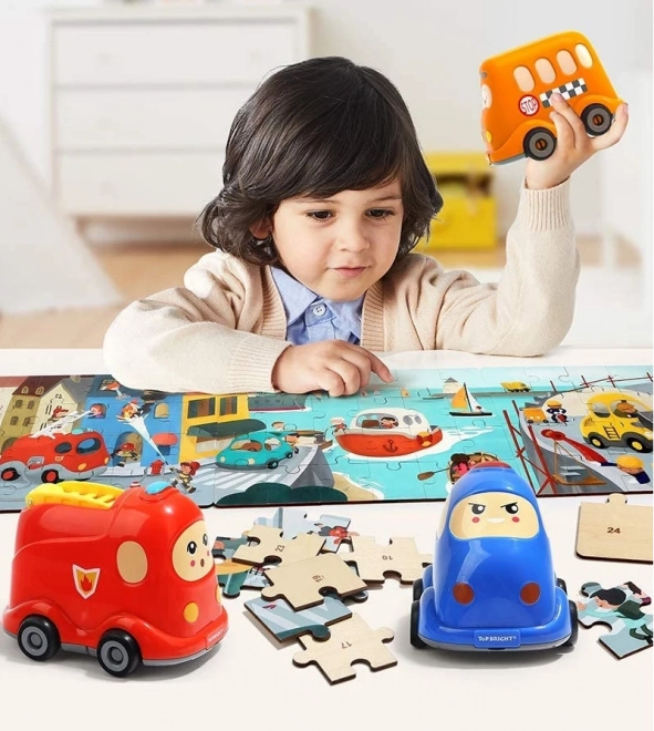Schaf meer voertuigen uit de TOP BRIGHT mini-serie aan en verbind de randen van de afbeeldingen tot één grote panoramapuzzel met het thema verkeer.