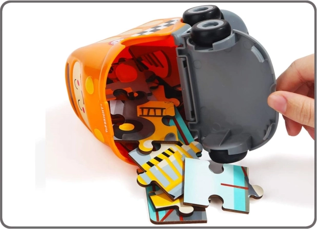 Je bergt de puzzelstukjes direct op in de kunststof schoolbus met een openend deksel. Zo hebben kinderen plezier en praktisch gemak op één plek.