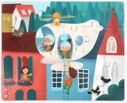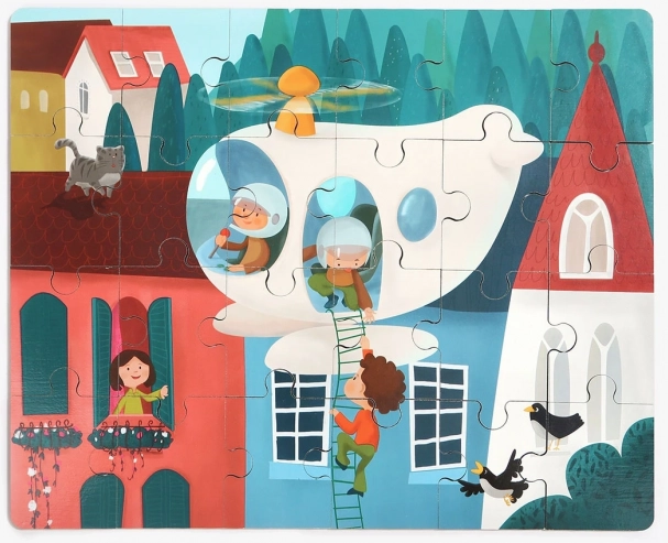De mini-serie maakt het mogelijk om de randen van meerdere sets (brandweerauto, politieauto, schoolbus, bulldozer, helikopter, schip) te verbinden en zo een panoramapuzzel te maken. Stimuleert geduld, oog-handcoördinatie en ondersteunt zelfstandig spel.