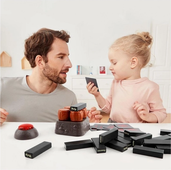 Organiseer thuis je eigen spannende behendigheidstoernooi. Bouw een toren van zorgvuldig afgewerkte houten blokken, zet de timer en neem om de beurt een zet: trek een blok eruit en leg het bovenop voordat de tijd om is. Wanneer de toren instort of de tijdslimiet afloopt, eindigt het spel met een grappige ontknoping dankzij de strafkaarten.