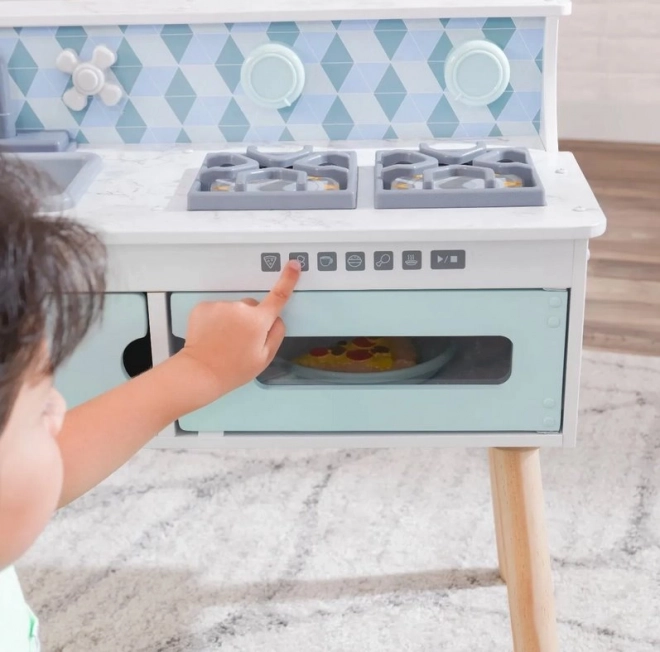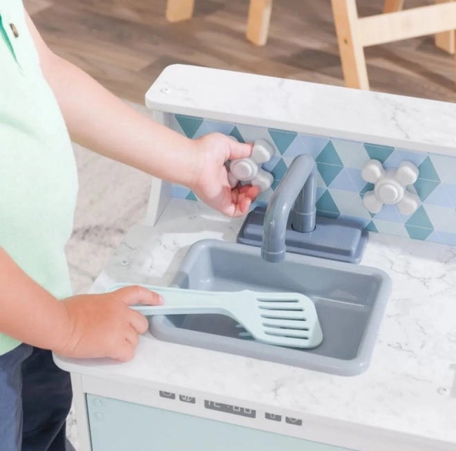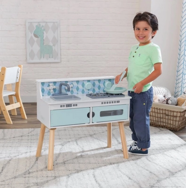 De houten kinderkeuken KIDKRAFT Play & Put Away is een doordachte speelset die kookplezier in een veilige vorm brengt. Realistische elementen, zoals kookplaten met twee bedieningsknoppen die prettig klikken bij het draaien, en openende deurtjes, stimuleren creatief spel en de ontwikkeling van sociale vaardigheden.