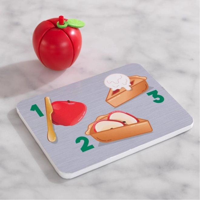 Deze creatieve speelset verandert de kinderkitchen in een knusse bakkerij. Kinderen doorlopen alle stappen van de bereiding – van het snijden van appels en het toevoegen van kruiden tot het samenstellen van de taart en het serveren. De meegeleverde receptkaart, die ook als snijplank dient, begeleidt kleine bakkers stap voor stap.