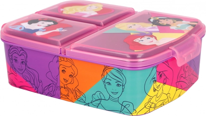 Praktische snackbox met DISNEY Prinsessen motief, met drie afzonderlijke vakken voor overzichtelijke voedselopslag. Gemaakt van duurzaam materiaal, BPA-vrij en dankzij de officiële licentie een favoriet bij elke kleine prinses. Ideaal voor school, speeltuin en uitstapjes.