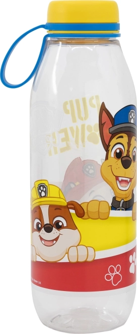 De fles is versierd met kleurrijke personages uit de serie Paw Patrol, die kinderen geweldig vinden.