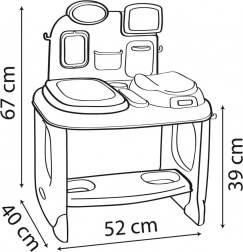 Het SMOBY BABY CARE kinderzorgcentrum is ideaal voor kleine dokters. Het biedt realistische elementen om de “patiënt” – een pop of knuffel – te onderzoeken, van meten en wegen tot het luisteren naar het hartje. De afneembare elektronische tablet met knoppen, LED en geluiden begeleidt kinderen interactief bij de verzorgingsstappen.