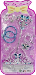 Deze prinsessenset is de perfecte aanvulling voor jonge sprookjesliefhebsters. Dankzij de combinatie van kroon, oorbellen en armbanden in bijpassend blauw ontstaat in een handomdraai een betoverende look en wordt creatief rollenspel gestimuleerd.