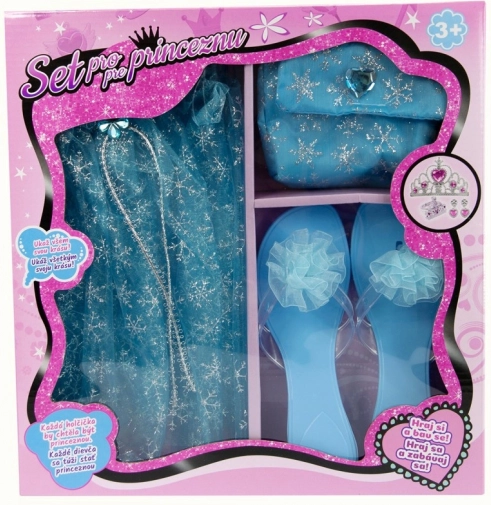 Deze betoverende set in het blauw helpt kinderen eenvoudig de look van een echte prinses te creëren. Dankzij de combinatie van rokje, schoentjes en handtasje is hij direct klaar voor gebruik en stimuleert hij fantasie en creatief verkleden.