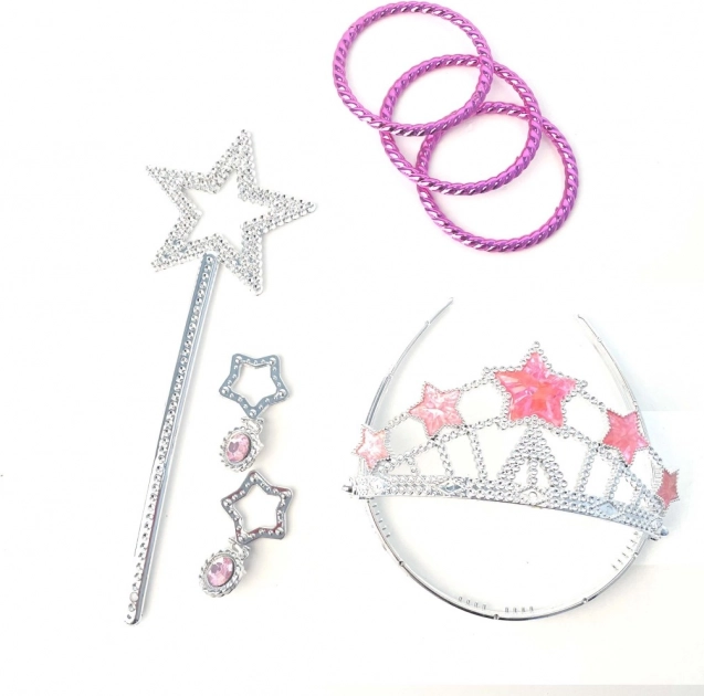 Deze prinsessenset met accessoires is een perfecte keuze voor alle kleine liefhebbers van sprookjes. Dankzij de combinatie van een kroon, oorbellen en armbanden verandert elk spel moeiteloos in een koninklijk avontuur.