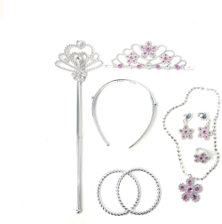 Afhankelijk van de uitvoering kan de set naast het kroontje, de toverstok, oorbellen en armbanden ook een ketting, ring of haarband bevatten – alles in een uniforme, prinsessenstijl.