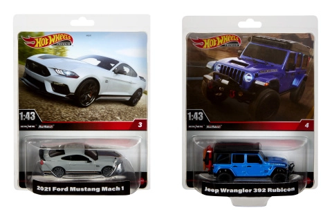 Hot Wheels Premium-modellen op schaal 1:43 bieden topafwerking met authentieke carrosseriedetails, verlichting en precieze bedrukking. Het grotere formaat dan de gebruikelijke Hot Wheels-modellen benadrukt elk detail en geeft je vitrinekast een verzamelwaardige uitstraling.