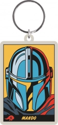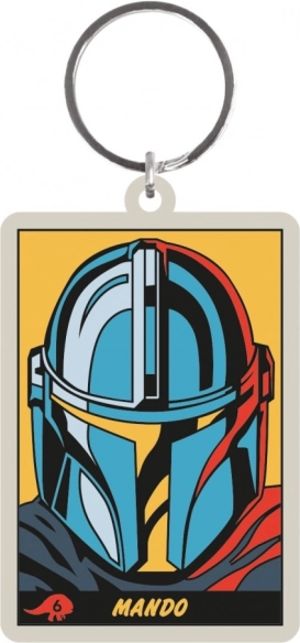 Duurzame sleutelhanger met een opvallend helm-motief en de tekst Mando – een praktische accessoire voor elke dag.