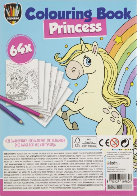 Kleurboek A5 met 64 creatieve afbeeldingen biedt plezier voor kinderen. Thema’s als Eenhoorn, Prinsessen, Dino en Piraten inspireren kleine kunstenaars.