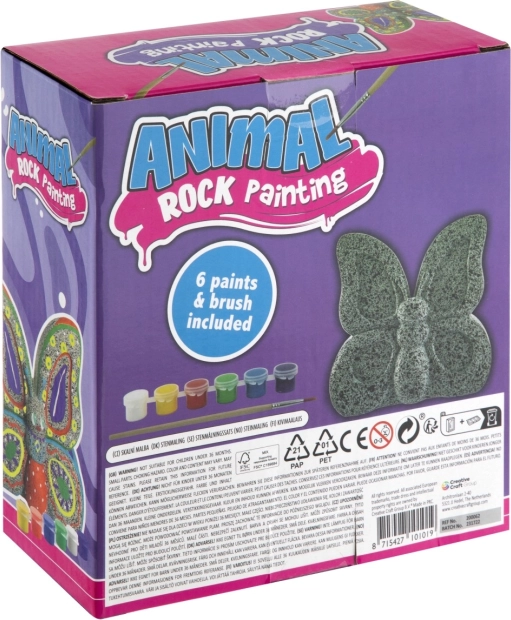 Deze creatieve set om een vlindervormige steen te schilderen biedt kinderen urenlang creatieve pret. Met de meegeleverde 6 kleuren en penseel kunnen ze een eigen, originele decoratie maken, de fijne motoriek trainen en kleuren combineren naar hun fantasie.