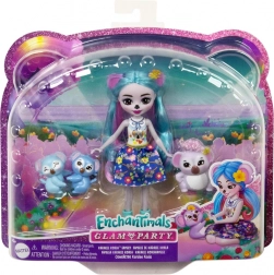 Ontdek de fantasiewereld met Enchantimals koala familie Joette. Deze set maakt deel uit van de Glam Party collectie, waar alle bosvrienden ongelofelijke avonturen beleven met hun huisdiertjes. Pop Johana is 15 cm hoog en heeft lang blauw haar met roze strepen, opvallende oren en een gele bloem op haar hoofd. Ze is gekleed in een originele top en een blauwe rok, draagt blauwe schoenen en haar ledematen zijn beweegbaar.