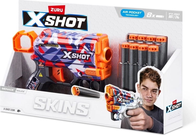 Beleef adrenaline met de X-Shot Skins Menace blaster in het unieke Malice-design. Dankzij de doordachte ergonomie ligt hij perfect in de hand en kun je snel reageren, ook tijdens langere schietspellen. De ideale keuze voor spelers die stijl, nauwkeurigheid en betrouwbaarheid willen combineren.
