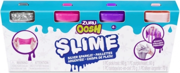 Geniet van uren creatieve fun met ZURU OOSH slime in een handige 4‑pack met kleine tubes. De slime is niet‑toxisch, niet‑kleverig, aangenaam rekbaar en helpt stress te verminderen. In de verpakking vind je roze, paarse, zilveren en regenboog slime met een glinsterend effect. Prijs geldt per doos met 6 sets.