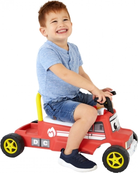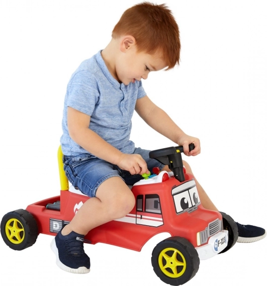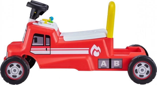 De praktische opbergruimte onder de zitting biedt plaats aan kleine speeltjes of wandelvondsten. De claxon op het stuur zorgt voor extra plezier en de achterste greep dient als steun bij het leren lopen. De loopauto is verkrijgbaar in 2 uitvoeringen (brandweer / ijsverkoper), het motief wordt willekeurig verzonden.