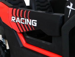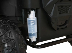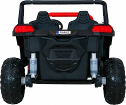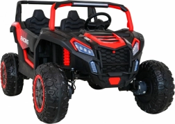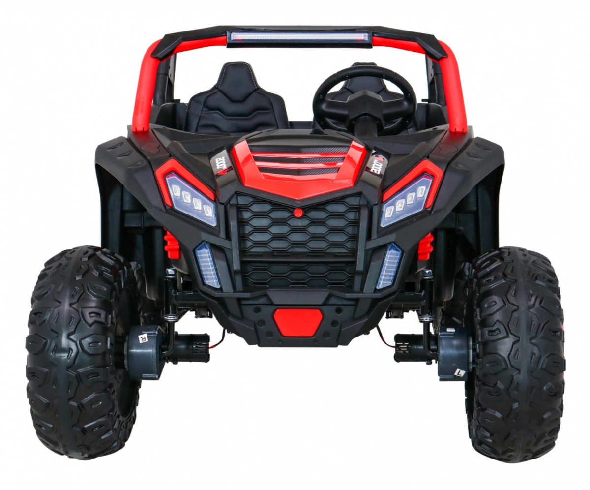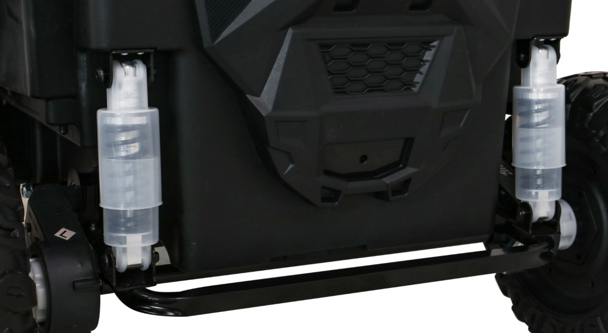De offroad-buggy voor twee kleine bestuurders combineert hoog vermogen, comfort en veiligheid. Vier 200 W motoren zorgen voor zekere grip op alle wielen, de soepele start beschermt kinderen tegen schokken en dubbele achterdempers verhogen het comfort op oneffenheden. Grote EVA schuimbanden 35×15 cm zijn stil en dempen goed, terwijl LED-lichten voor en achter de zichtbaarheid verbeteren.