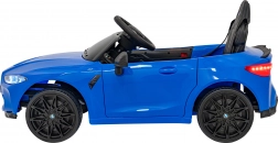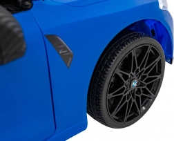 Stijlvolle elektrische kinderauto BMW M4 in blauwe kleur biedt een realistische rit met twee motoren van 2×35 W, een 12V/7Ah accu, te openen deuren en LED-verlichting. Dankzij de soepele start, EVA-schuimbanden en een 2,4 GHz afstandsbediening met veiligheidsknop STOP is de rit comfortabel en veilig. Het audiopaneel met Bluetooth, USB, MP3 en AUX zorgt voor favoriete muziek voor kleine chauffeurs.
