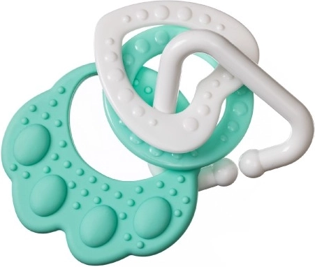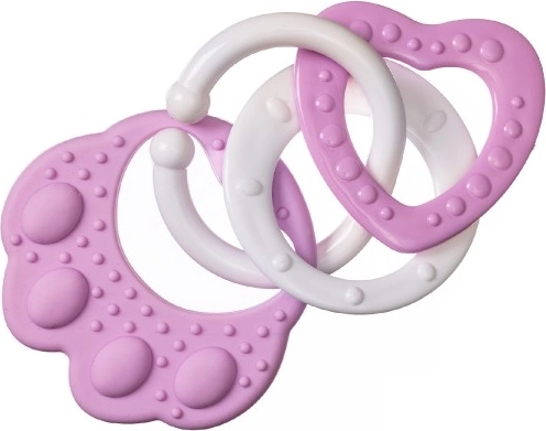 Onze bijtring in de vorm van een berenpoot is ideaal voor kleine ontdekkers. Speciaal ontworpen vormen zonder scherpe randen garanderen veilig gebruik. Vastgemaakte kunststof vormen, zoals rondjes, hartjes en belletjes, zorgen niet alleen voor plezier, maar bieden ook de noodzakelijke verlichting bij pijn door doorkomende tandjes.