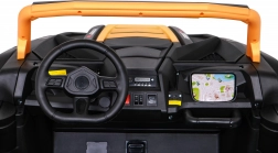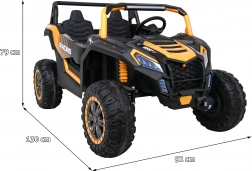 Deze robuuste elektrische buggy is gemaakt voor offroad-avonturen. De 4x4-aandrijving met vier 200 W motoren zorgt voor kracht op hellingen en ongelijk terrein, terwijl de vloeiende start kinderen beschermt tegen schokken. Grote EVA-wielen en achterste schokdempers absorberen oneffenheden comfortabel en bieden stabiliteit.