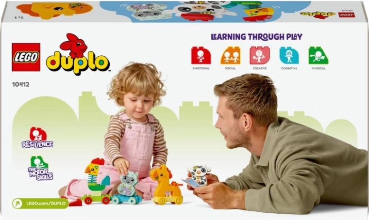 De set bevat 4 bouwbare dieren (haan, paard, schaap en koe) en 3 robuuste wagonnetjes die eenvoudig te koppelen zijn. De grote, afgeronde DUPLO elementen zijn veilig en ideaal voor kleine handjes. Ouders kunnen makkelijk meespelen en zo vrij spel, expressie en het ontdekken van de wereld stimuleren.