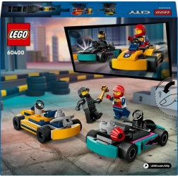 Start de motoren! Deze compacte set bevat twee karts in opvallende kleuren, twee minifiguur-coureurs en een trofee, zodat je in een oogwenk spannende duels op de baan organiseert. Het eenvoudige bouwen met 99 onderdelen is ideaal voor jongere bouwers en biedt een snelle overgang van bouwen naar spelen.