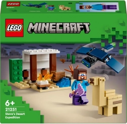 Steves Woestijnexpeditie is een unieke bouwset voor fans van het spel Minecraft, ontworpen voor kinderen vanaf zes jaar. Het bevat drie LEGO Minecraft figuren inclusief Steve en een huis in het woestijnbiome. De set bevat iconische elementen uit de game, zoals een werkbank, kampvuur en verschillende woestijnscènes.