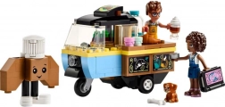 De LEGO Friends Mobiele Bakkerij bevat twee minifiguren, een hondenfiguur en tal van accessoires zoals een croissant, macarons, koekjes en andere bakkerijattributen. Deze elementen inspireren kinderen om hun eigen verhalen te creëren en stimuleren hun creativiteit.