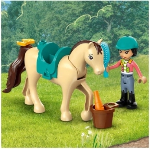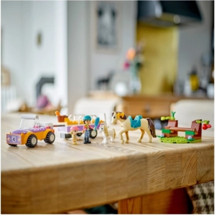 Deze kleurrijke set biedt kinderen alles voor een uitstapje in de natuur: een auto met trailer voor het vervoeren van een paard en een pony, de minipoppetjes Liann en Zoi en veel accessoires voor de dierenverzorging. Dankzij de startsteen gaat het bouwen snel en intuïtief, ideaal voor jonge bouwers. De LEGO Builder-app maakt het bovendien mogelijk om modellen in 3D te bekijken en de voortgang te volgen.