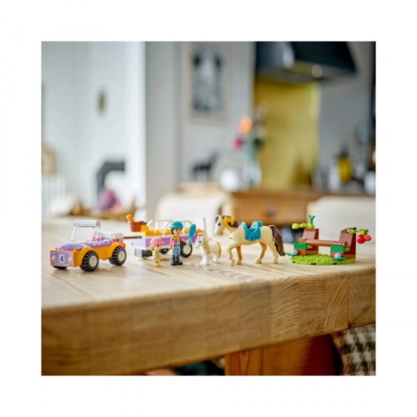 Ontdek het speelplezier voor kinderen vanaf 4 jaar met de LEGO FRIENDS paarden- en ponytrailer. Kinderen bouwen een auto met aanhanger, spelen rollenspellen met de minipoppetjes Liann en Zoi en zorgen voor hun dierenvrienden. Inclusief figuren van een paard en een pony, een startsteen voor eenvoudig bouwen en accessoires voor de verzorging en ritten in de natuur. Geweldige eerste bouwervaring, 105 onderdelen, creatief spelen met dieren en stimulatie van de verbeelding.