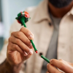 Ontspan tijdens het in elkaar zetten van het LEGO Boeket, dat je vreugde en een prachtig decoratief element voor je interieur brengt. De set bevat een dozijn rode rozen - vier volledig bloeiend, vier in bloei en vier knoppen met lange groene stelen. Dit alles wordt aangevuld met vier takjes gypsophila met kleine witte bloemen. Dit elegante boeket kan prachtig worden gecombineerd met andere sets uit de LEGO botanische collectie.