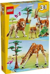 LEGO Creator 3-in-1 Wilde safaridieren brengt kinderen de kleurrijke wereld van de Afrikaanse natuur. Uit één set stenen bouwen ze een majestueuze giraf met lange nek en beweegbare gewrichten, aangevuld met een flamingo en boom. Daarna kunnen ze het model eenvoudig ombouwen tot twee antilopen (moeder en jong) of tot een indrukwekkende leeuw – telkens met begeleidende elementen voor rollenspel.