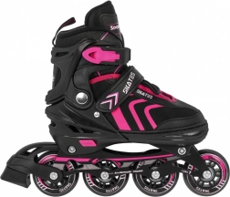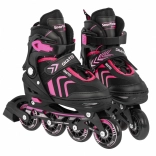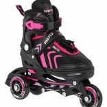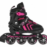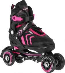 Universele 4-in-1 set voor jonge skaters die inline skates, quad skates en ijsschaatsen slim combineert in één uitrusting. Dankzij de 5-traps maatverstelling (39–43), het aluminium frame, wielen van PU 72 mm 85A en ABEC 7-lagers biedt hij een soepele rit, veilige vergrendeling en lange levensduur.