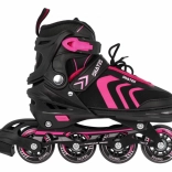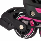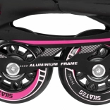 Veilig vastzetten dankzij de drievoudige sluiting: vetersluiting, klittenband en microgesp met borging tegen ongewild openen. De rechterskate is uitgerust met een rem voor gecontroleerd stoppen. Het aluminium frame biedt stabiliteit en nauwkeurige sturing, terwijl ABEC 7-lagers en PU-wielen 72×24 mm (hardheid 85A) een soepele en stille rit garanderen.