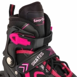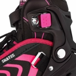 Drievoudige sluiting (veters, klittenband, gesp met vergrendeling) houdt de voet stevig op zijn plaats. Rem op de rechterskate voor snel stoppen.