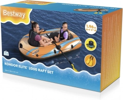 De set bevat een boot, een paar peddels en een voetpomp, waardoor het gemakkelijk is om je voor te bereiden op het water zonder extra apparatuur aan te schaffen.