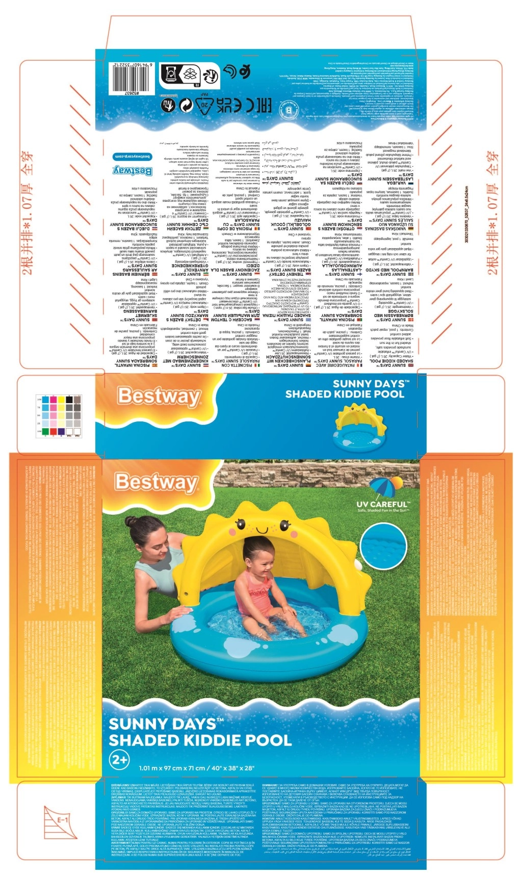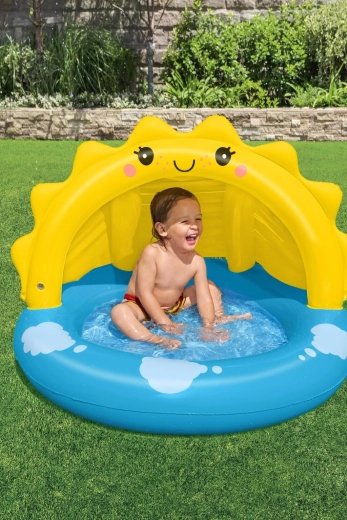 Schattig opblaasbaar peuterbad BESTWAY met zonnedak biedt kinderen veilige waterpret, zelfs op hete dagen. Dankzij het geïntegreerde UV-dak, een zachte, opblaasbare bodem en dubbele luchtkamers is het comfortabel, stabiel en beschermt het tegen direct zonlicht. Compact, makkelijk op te blazen en ideaal voor kleinere ruimtes.