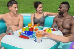 De set bevat een drijvende tafel, perfect voor het plaatsen van drankjes of snacks direct op het water. Zo geniet je van comfort zonder het zwembad te verlaten. Gemaakt van duurzaam kunststof materiaal voor een lange levensduur.