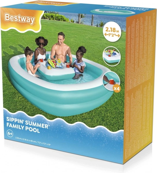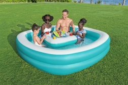 Het opblaasbare zwembad met afmetingen 218x218x48 cm biedt volop ruimte voor plezier met het hele gezin.